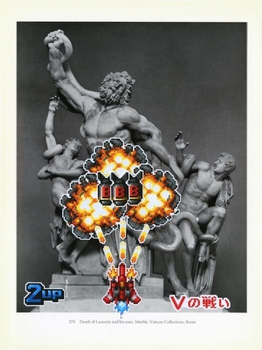 The Shadow of the Colossus video is not the first time Oliver Payne has used video games in his art. He’s juxtaposed sprites from bullet hell shooters on images of classic marble sculpture and composed field recordings of the near-extinct American arcade scene, as two examples. Though Payne has appropriated video game imagery for several bodies of work, he’d rather not be pigeonholed as a maker of game art. “I’m actually rather weary of using games in my work,” he says. “I see it as potentially dangerous. On the one hand, [videogames] are colorful, seductive and fashionable artifacts of low culture, but still, they offer ideas and invite dialogues that are fascinating and irresistible.” He points to Segagaga, a Sega-produced game that parodied the company’s failed Dreamcast console, as “a bizarre example of self-referential satire that could not exist in any other medium.”