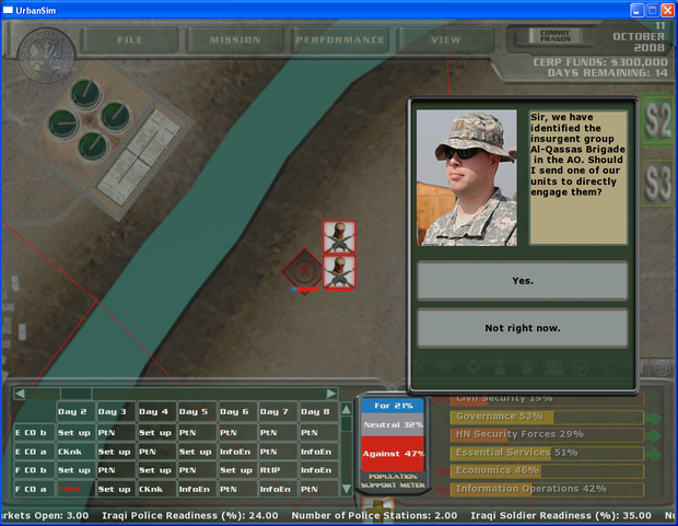 But the military isn’t using videogames exclusively as recruitment tools, and not even all of them are shooters. There are games that teach Comprehensive Soldier and Family Fitness, the controversial program that attempts to prepare soldiers how to handle themselves when deployed and how to re-integrate with their families when they return. UrbanSim is a high-level tactics simulator from the perspective of an army battalion commander. Perhaps most interestingly is Virtual Iraq/Afghanistan, a form of therapy used to treat PTSD. The game uses settings from the military-funded Full Spectrum Warrior to recreate traumatic situations—detonating IEDs, fire fights, etc.—in a safe environment. At the conclusion of a University of Southern California clinical trial using Virtual Iraq/Afghanhistan, 45% of active-duty soldiers no longer had PTSD, with another 17% showing improvements in their symptoms—an above average rate for treatment.