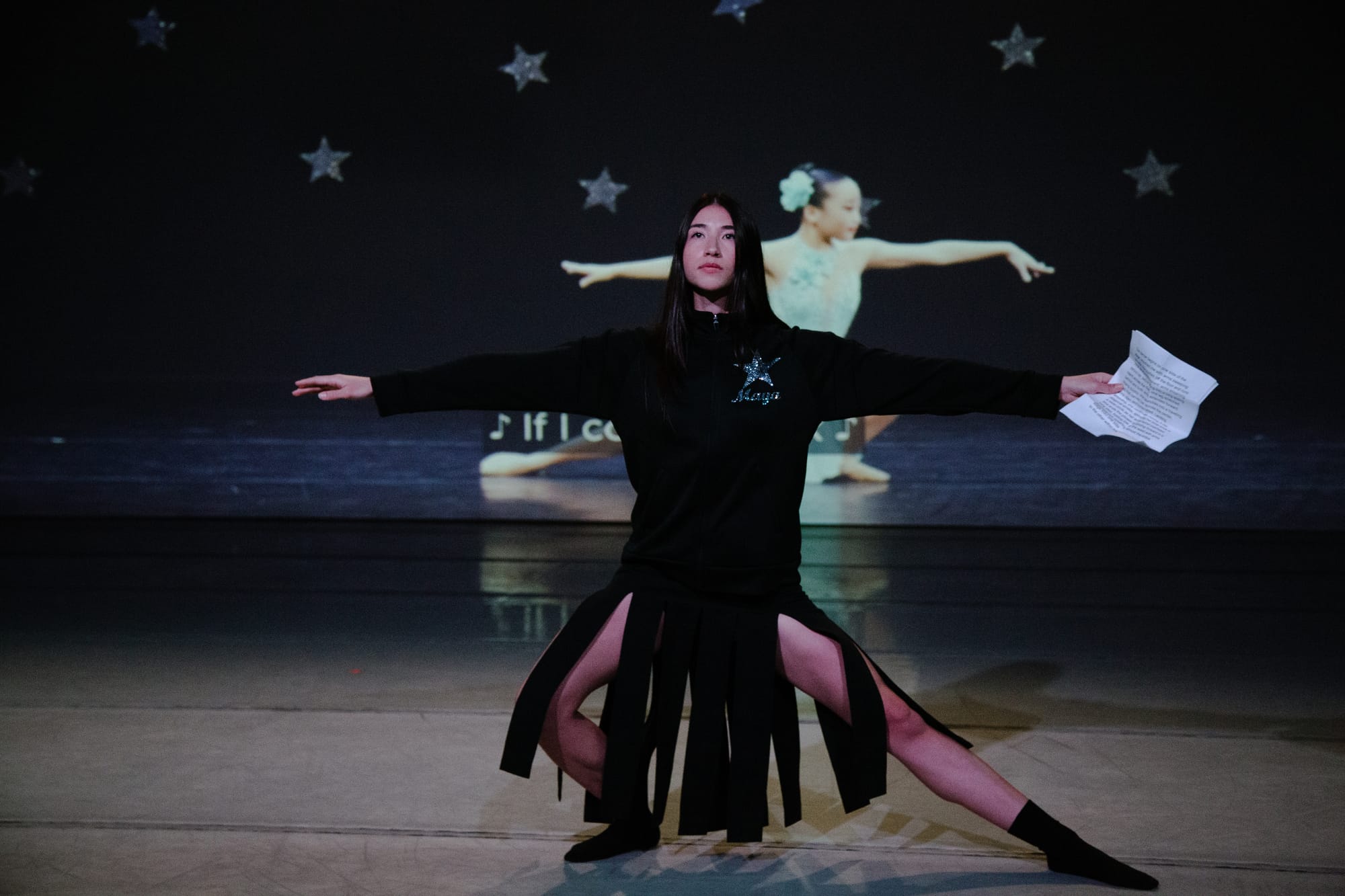 All photos: Maya Man, StarQuest (Performance-Lecture), 2026, co-presented by bitforms gallery, SOOT gallery, and the Future Humans program at the BerggruenInstitute at L.A. Dance Project. Photo by Yuchi Ma.