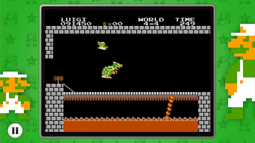 This isn’t to say that NES Remix 2 is all about repackaging great games in bite-size ruleset wrappers. Some levels serve up a bit of franchise crossover, such as when Samus collects coins in a Mario level. Occasionally these sprite changes add something to the original level, as in the Kirby boss battle that includes Boos in NES Remix 2, changing how you beat up on Whispy Woods. But the majority of the time NES Remix 2 walks the line between product placement and design by find-and-replace. The best example of this is certainly Super Luigi Bros., NES Remix 2’s major differentiator from its predecessor. Super Luigi Bros. stars the meeker Mario Brother and is a carbon copy of the original Super Mario Bros. with one important difference: It’s flipped. Instead of the familiar work of moving left to right, Luigi runs right to left. This is unsettling at first. Your instincts get scrambled. You suck. But then, by 1-2 or 1-3, it clicks, and you’re just playing Super Mario Bros. in the mirror. In a way, Super Luigi Bros. is the equivalent of playing a song backward and calling it a remix.