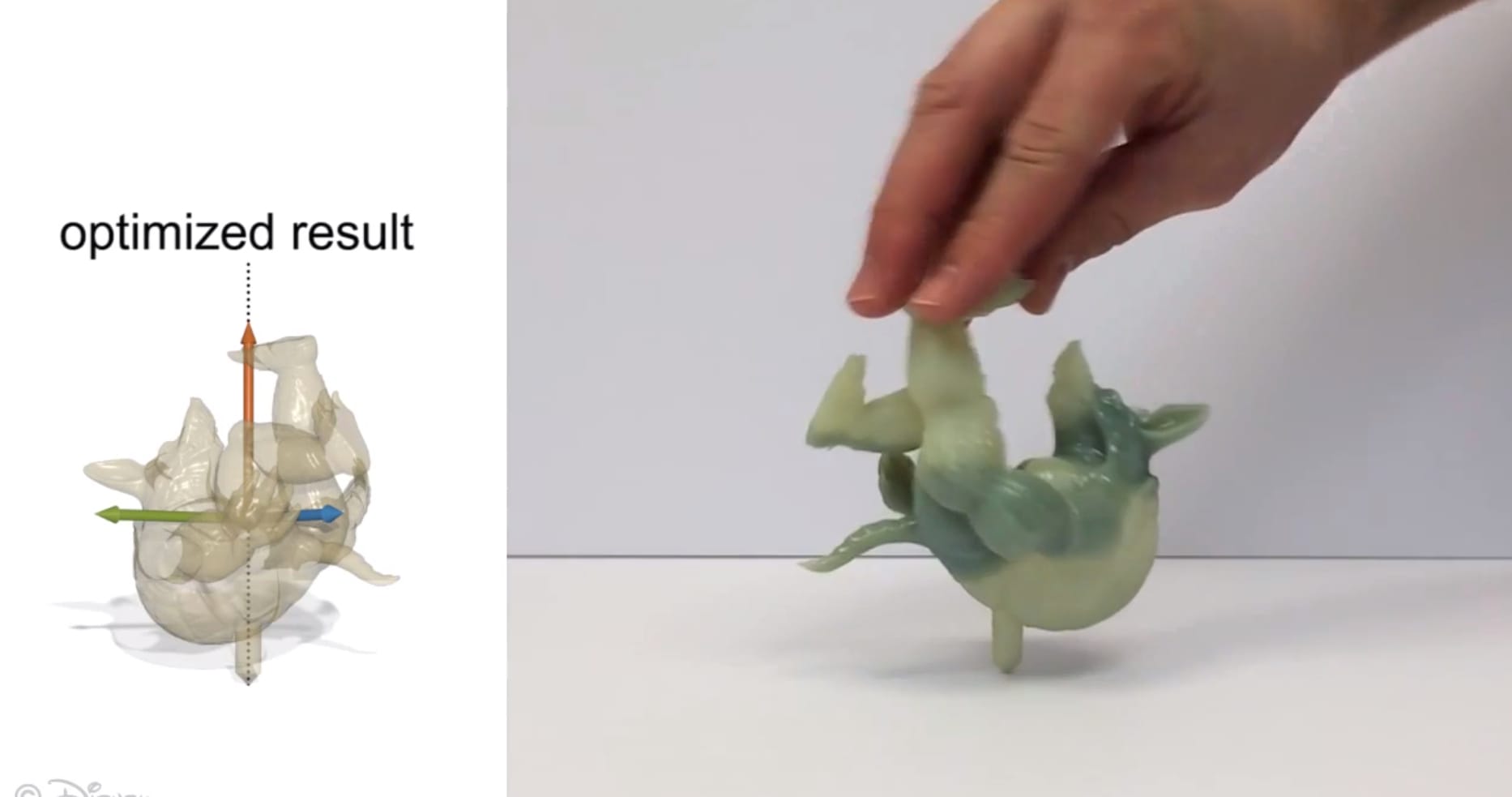 The result will make Fantasia fans smile. Breakdancing armadillos, twisting elephants, and pirouetting fat men bound forth. You can create the model with a computer and then print it with a 3D printer. Now your children will be happy and you can explain the joys of rotational dynamics to them. (Or even one better, have them read Disney Research’s paper.)