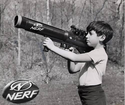From Wired, the ultimate NERF story: The ball was first released in 1970 in a small black box whose packaging urged, “Throw it indoors. You can’t damage lamps or break windows. You can’t hurt babies or old people.” Also, this: