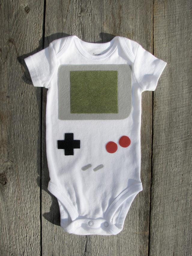 Mashable has an adorable slideshow up of baby clothing fit for any self-respecting geek. My favorite is this restyling of the Nintendo Gameboy available at Etsy.