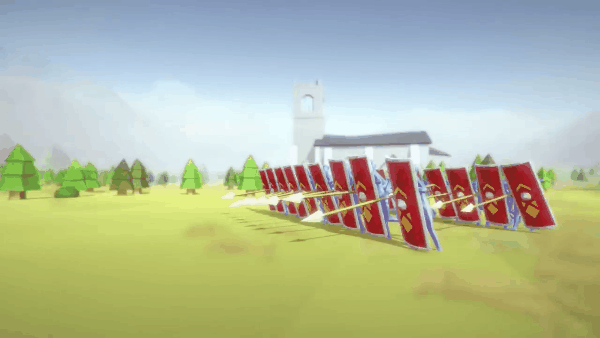 Placing a wall of shield barriers with a phalanx of spears behind them, with cannons and ballistas raining projectiles from the back lines. A horde of peasants and club-wielding barbarians facing a rushing line of chariots. The physics-based combat means cannonballs barrel through charging soldiers, unleashing ballista bolts fling their launchers around wildly, and explosions send colorful bodies flipping through the air.