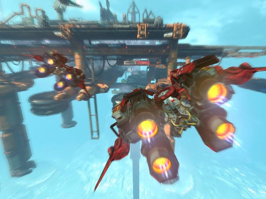 To a certain sort of person, that will be the greatest proposition on the planet. This game is for that person. There’s a curve here; as in most games of Strike Vector’s ilk, your blind spot will be your undoing. Go too long without checking it and at best you’ll get a rude gesture, worst will find you busted up pretty hard. Being a bit rubbish at keyboard and mouse, I was rarely without someone’s reticle on my rear, and in any given match it was highly unlikely that I would, you know, kill anyone. Even when I did those points were promptly negated by a crash.