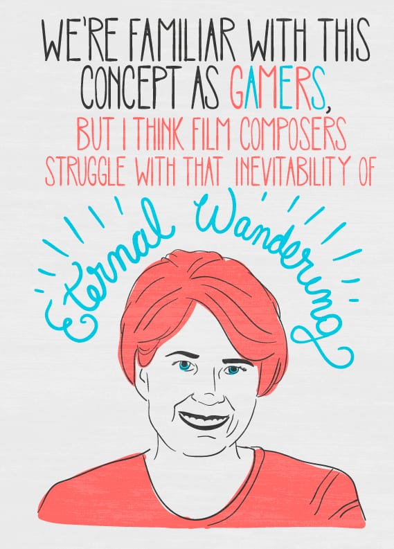 One challenge I think film composers meet is that they’re just not as familiar with the concepts of how players spend their time in a game, particularly ones like Skyrim. There have been many wonderful scores by film composers—but the wandering sections tend to get boring. I don’t know how else to say it. They expect those sections to get interrupted by the main story and cinematic sequences. But, a player could easily spend the next six weeks of their life wandering around Skyrim instead, looking for a plant.