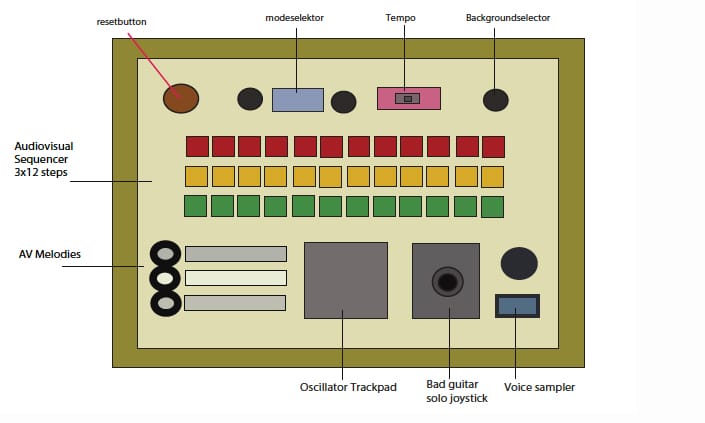 Verbiesen wants people to be able to create “mayhem” through a series of knobs, dials, and buttons that activate animations onscreen with accompanying sounds. Some of these parts require more than just pushing a button, such as the bit-crusher voice sampler and the bad guitar solo joystick. Another interesting facet of the Mayhem Machine is the noise generating finger pad. The functionality of the Mayhem Machine is discovered through playing and trying out all of the tools available to the player.