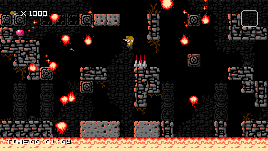 I don’t think I’ve ever enjoyed a sled ride more in my life, because I’ve never had to work as hard for one. A task which once felt insurmountable had been met. That’s not a feeling I’ve had with games for a long time—not even in Dark Souls. But somehow, the small scale trials found in the levels of 1001 Spikes bring me back. Grabbing the key and making it inches from the stage door before dying carries a similar weight, and makes realizing the far-fetched goal all the sweeter.
