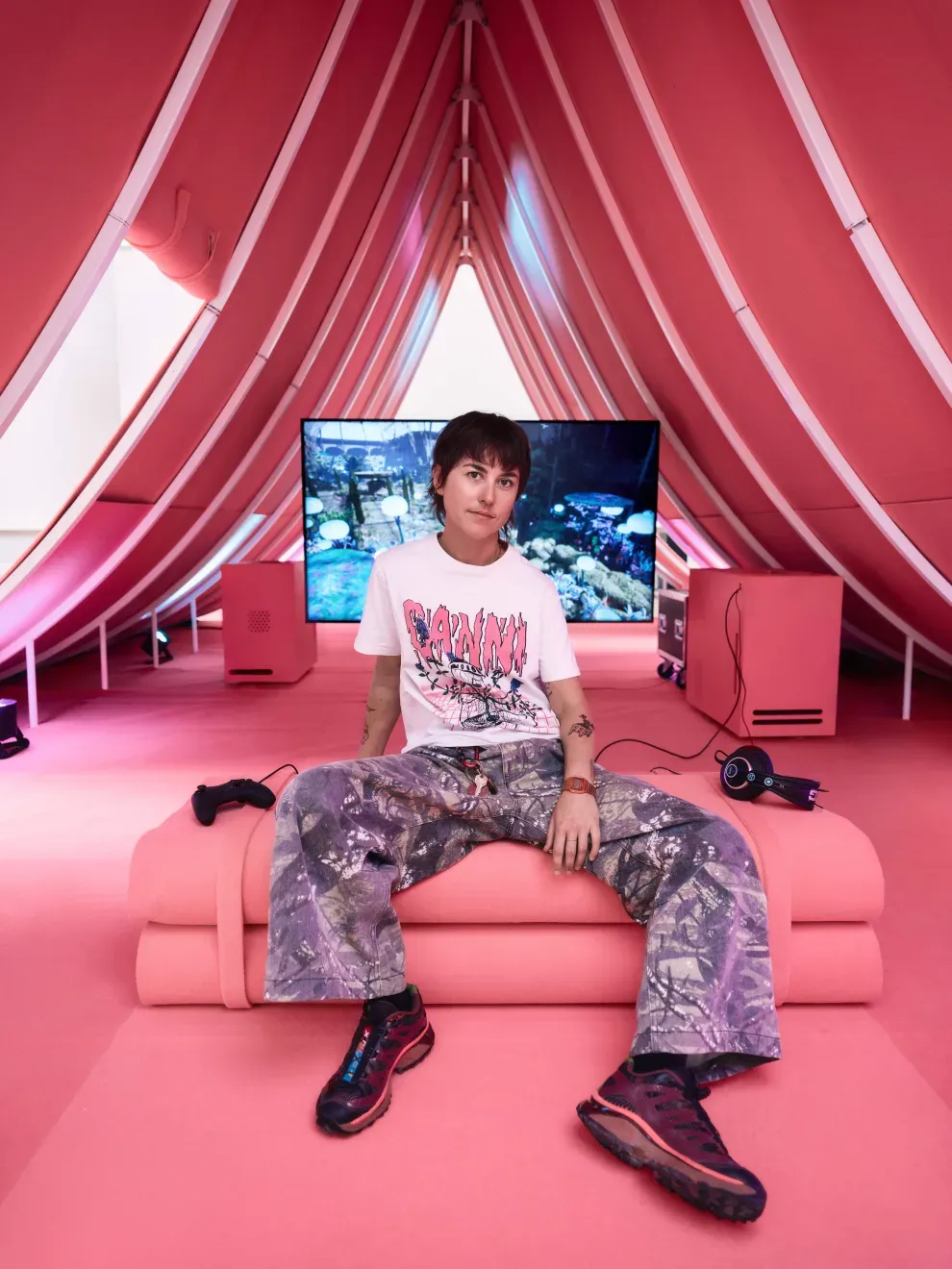 But something changed this year. "The long and short of it was, this year I was thinking a lot about love," Bucknell said. Two new works, Nightcrawlers and Small Void, found Bucknell turning to multiplayer games to flip traditional gaming hierarchies, creating experiences where players must work together as different species—bats and flowers in pollination dances, matter and antimatter seeking reunification in black holes. Showing at venues like Centre Pompidou and informed by residencies at CERN, Bucknell's games challenge players to navigate relationships beyond human language—through sonar, electromagnetic pulses, and haptic feedback. Their work asks us to reconsider agency, partnership, and what it means to truly cooperate.