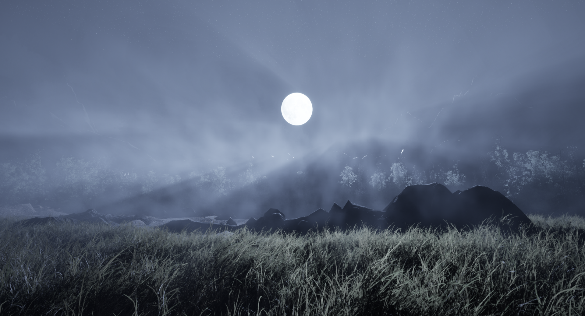 The connective tissue between Nightcrawlers and The Alluvials is literal in some ways. There was one of the levels of The Alluvials that I call a pollination simulator. You're playing as either the Joshua Tree or the Yucca Moth. If you're playing as a moth, you're flying around and going to these trees that have been tagged for you to pollinate. If you're the tree, you're just talking to the moth to get the particle systems to come over to you, which triggers the pollination event.