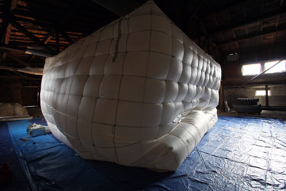 On the exterior, String Prototype appears to be a giant inflatable dome, but on the inside, dozens of ropes keep viewers/players aloft. Numen says the end effect is “impossibility of perception of scale and direction results in simultaneous feeling of immenseness and absence of space.”