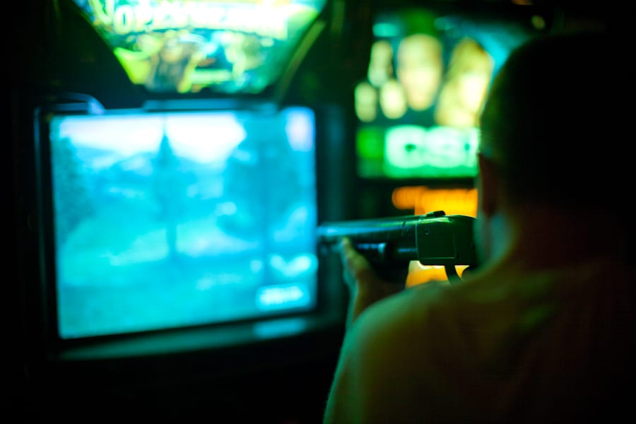 Incredible Technologies bought the game, helped Play Mechanix put out three or four versions of increasing refinement, and crammed thousands of consoles into bars across the American South—in hunting country. But it wasn’t until Petro hooked up with another distributor, Betson Enterprises, and added a second gun to the console for head-to-head gameplay, that the game really took off. Betson was “very good at getting it placed in urban locations,” says Petro. “All of a sudden, it doesn’t just have to be in a hick bar. It can be in Manhattan. And it can earn gangbusters. Once it hit the mainstream, everybody got on board.”