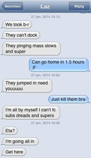 The CFC’s decision to escalate the fight was apparently made by fleet commander Lazarus Telraven, who had called in sick that day, according to his AMA. Another of the CFC’s bloc-level fleet commanders, Mister Vee, tweeted a pic of the conversation leading to the moment (take a second to click that link). On the often-NSFW Kugutsumen forum, figures from both blocs praised the decision to commit; Eve coalitions often back down or “blueball” the other side, and rarely risk their supercapital fleet in an uncertain fight. Manny, the FC who ran the PL/N3 fleet early on, wrote on reddit that “a ship hull is the price of admission for fun fights.”