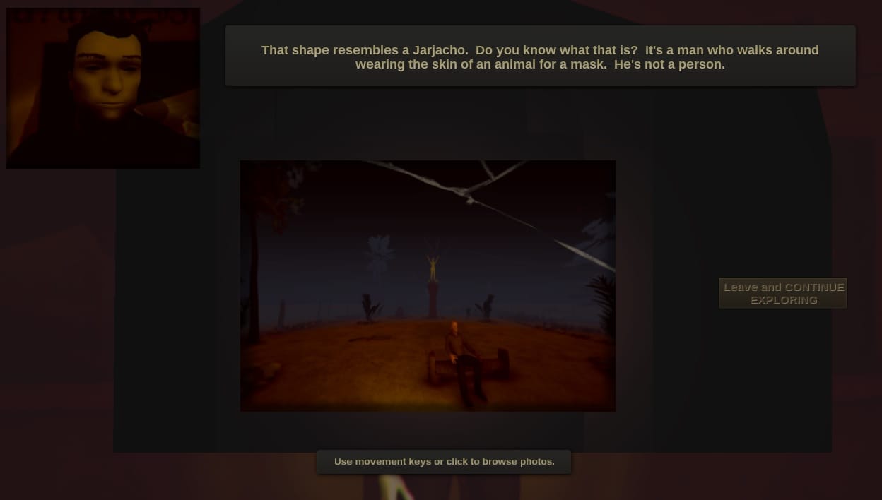 Speaking to me last year, Oldenburg explained that 1000 Heads Among the Trees is a virtual recreation of his ghost-hunting trip to Cachiche. While there, Oldenburg stayed with a brujo (sorcerer) called Don Miguel Angel. His voice and likeness appears in the game as he tells you about the town and its legends, as do a couple of other townspeople Oldenburg spoke to during his stay. Likewise, the ambient sounds in the game are direct recordings of Cachiche’s natural soundscape that Oldenburg brought back. And the town itself is recreated as faithfully as Oldenburg could manage, using his photographs and Google Earth to get a rough layout and look that matched the place, even if it isn’t “house-for-house.”
