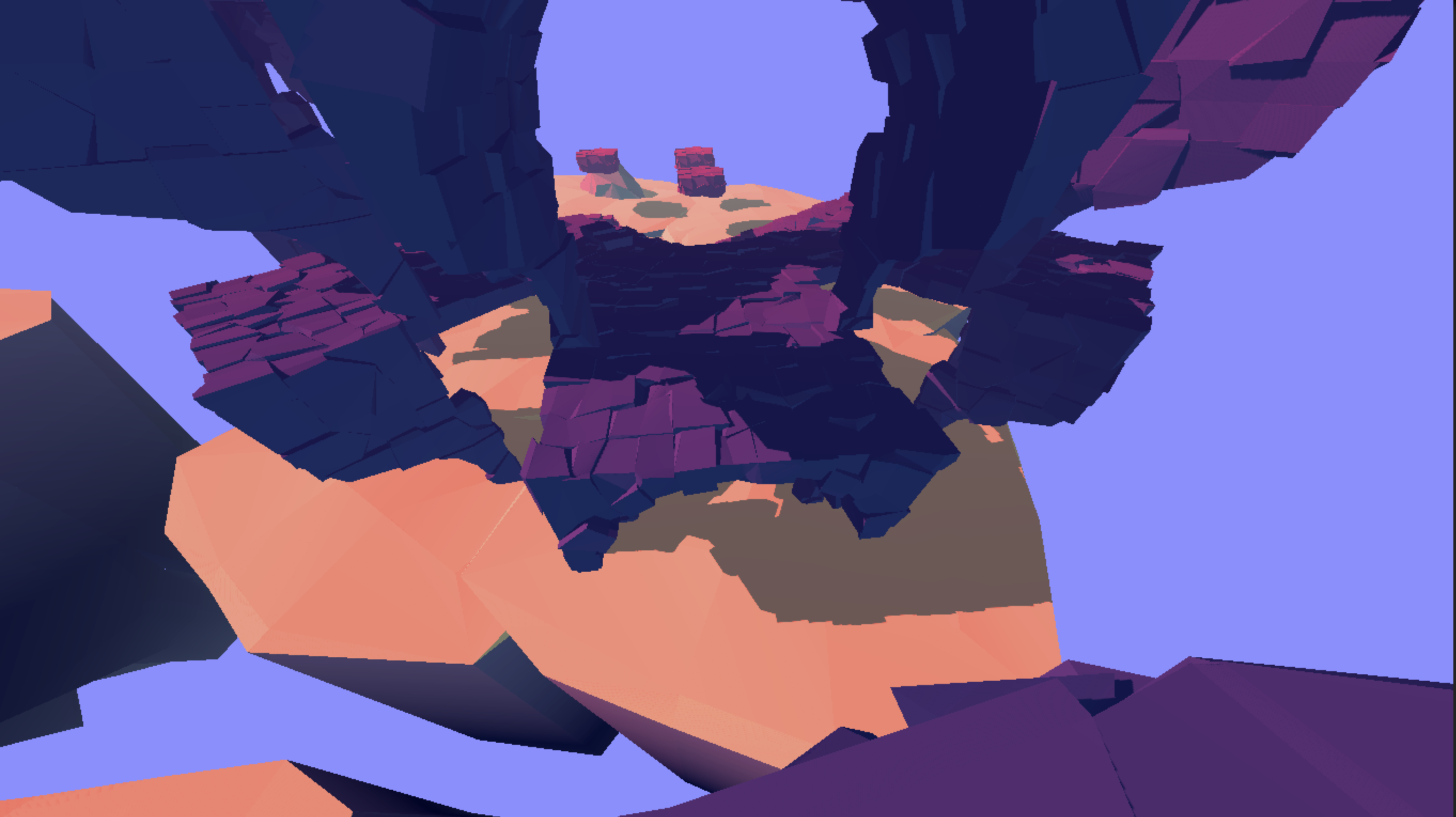 Johns incorporated these 20-year-old design lessons, which were abandoned long ago in favor of realism, into GIBSON HYPERDRIVE. He kept twisting pillars, hanging them on the edge of sky islands, adding etches and nooks, half-eroded castles sitting on mountains, stacks of arches. The results speak for themselves. These are the chunks with which his systems will piece together entire levels as is the case in Spelunky. It’s all very sensible, designed, and planned out. It is the serious side of Johns that spoke to me. But what it’s setting up is for that moment-to-moment expression that Johns so easily slips into. He wants his players to embrace that, too, as they fly at hyper speed through his carnival of architecture, living in two-second increments of absolute hyperbole.