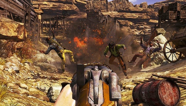 Likewise, Call of Juarez is all about aiming and shooting. There are no gripping existential choices that have no right answer, no self-righteous undertones that awkwardly address a social issue, and, because our chit-chatty narrator is talking in voiceovers, there’s no stopping to listen to exposition that frankly I don’t give a damn about. The through line amounts to: Here’s a gun. You’re a cowboy. Shoot something. In the movies, we demand that cowboys have grit, show resolve, and are out to get the scurvy bastards, but because the essence of videogames is interaction, good gunplay is justification in itself. The cowboy traits have become tropes anyway.