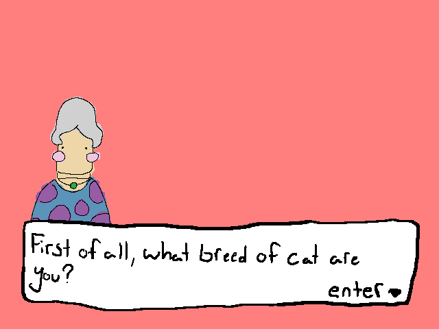 Since the felines have already proven they’re not above trickery, disguise, and witchcraft to win this war, it’s only fitting that we wouldn’t be either. In Tom Astle’s Cat Show, you must use all your skills and training as a secret agent (virtually none) in order to pull off the ultimate cross-species heist. There’s a cat competition, with 10,000 cat dollars on the line—which could buy a person a lot of anti “hyper-cuteness” defenses against their feline enemy.