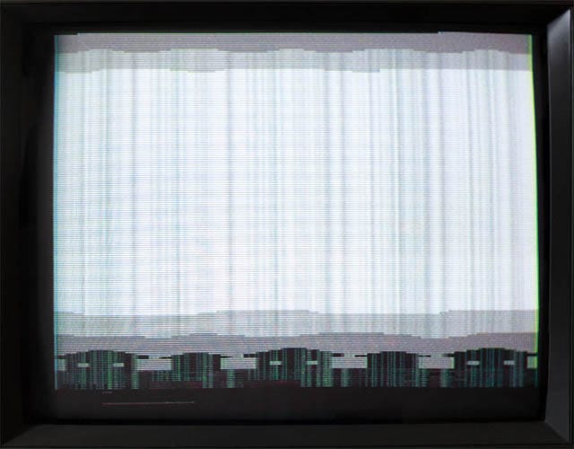 This game poem is about watching the rain, and given the humble squawks of the VCS, it does an admirable job of capturing its sound. There’s a deep monotonous fuzz punctuated by staccato squeals, which emulate the distant roar of heavy rainfall and the splash of nearby puddles. The screen is filled with rapidly alternating shades of gray, torrents of rain falling on a few squatted buildings. The player’s task is to watch for lightning and then press and hold the button from the time of the flash to the clap of thunder. The yellow line of lightning lasts for just a moment; look away and you might not even know you missed it.