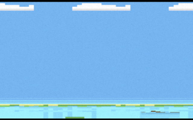 The player watches a log float downstream; the water shimmers and clouds pass slowly overhead. Given the platform, it’s easy to imagine the stream as an isometric view of the Frogger landscape, especially because the pulsing audio sounds like the chirp of crickets. A short green bar represents the player’s gaze. Pressing the button causes the player’s eyelids to slowly droop shut, leaving the screen black. Your task is to doze off. At first, I simply closed my eyes at random intervals, hoping to stumble upon the right pattern. The trick is to close one’s eyes and open them when the log, which moves at a steady rate, is at the point where the green barrests. I realized the chirps came at regular intervals, and I closed my eyes and counted.
