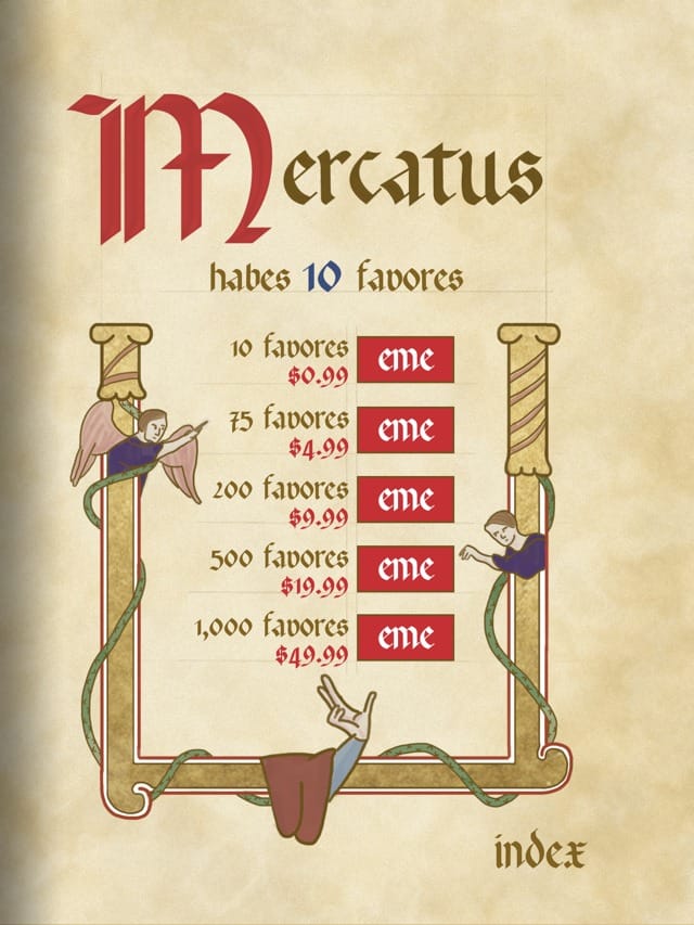 Buying or selling positions of influence within Christian churches is called simony, and Simony is also the title of Ian Bogost’s new game that lets you buy your way to the top of the leaderboards. Leigh Alexander at The Creators Project summarizes how the game’s profits will go towards funding the Museum of Contemporary Art where the game is displayed on an elevated pedestal.