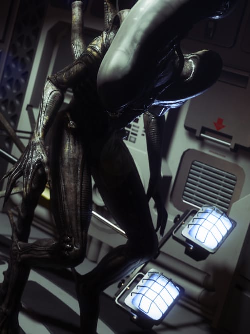 I’m about halfway through Alien: Isolation and I promised myself four saves ago that I would stop at the next phone to make dinner. This time I stick to it, stand up, and feel an intense knot in my left shoulder. Despite two decades of attending hardcore shows, this is the first time in my life that my neck is so tight I’m considering paying for a massage. As Amanda Ripley, I must have been craning my head all over while I commanded her to do the same, because you have to keep an eye on these terrors. I scramble under desks at the slightest thump in the wall. Biting my lip raw while I crab-walk down another hallway where the click of the god damn lights get me going every time.