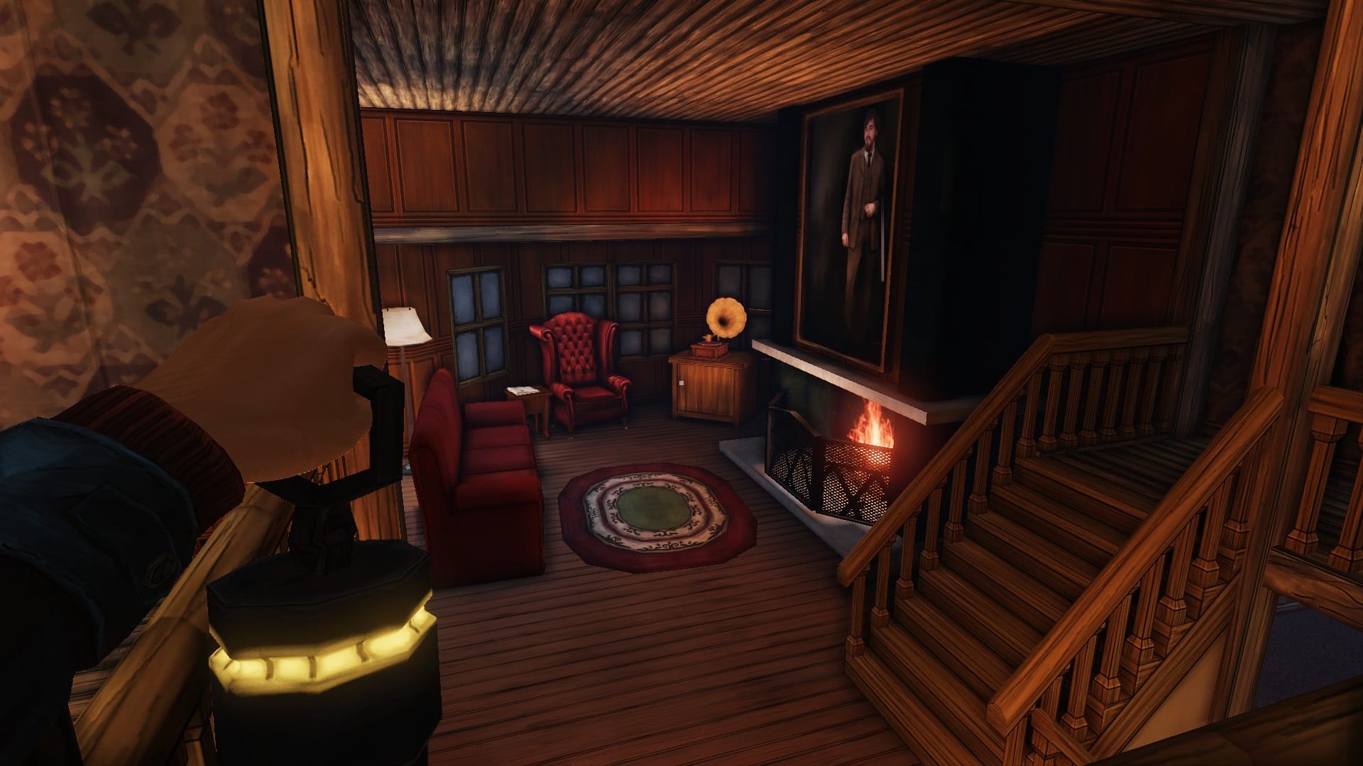 Inside Pinwheel are stories of struggling families, conflicted wardens, and the experiments of Alexander Graham Bell. It’s a town-sized Gone Home; most houses are fully explorable, and have poems, scribbled folk songs, and letters to read, as well as items to pick up and rotate. There’s a school, cider barn, church, the locker rooms of miners, a blacksmith, a fisherman’s export house, toy boats in the river, a cinema that’s about to close down, and the stories of monsters that children spread to scare each other. It’s very Dickensian, as stories are weaved around how terrible the working conditions of the miners are—sometimes leading to deaths—and how jolly the whole town is as it preps for the upcoming May Day celebration.