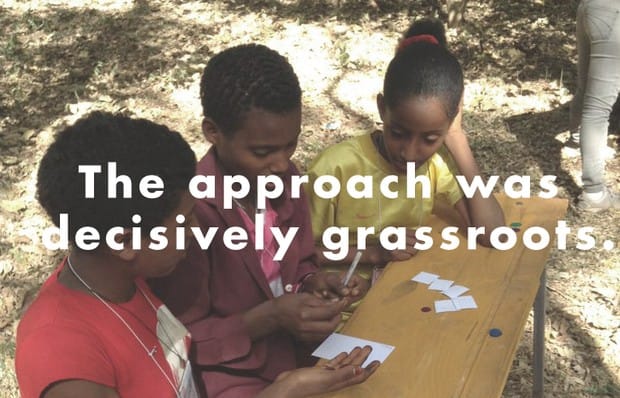 A professor of game design at Columbia University, Hammer spent her tenure in eastern Africa in Addis Ababa and the rural province of Amhara, living out of hotels. As for the climate, “it was reaaaaally hot!” she says. Her daily activities included playing games with girls, teaching girls games, having them teach games to her. But she wasn’t frolicking in the grasslands for her own amusement. These game clubs were part of a cultural intervention program called Yegna (Amharic for “ours”), aimed at upping the status quo for adolescent girls age ten to sixteen. These are “games that change people’s lives,” she says.