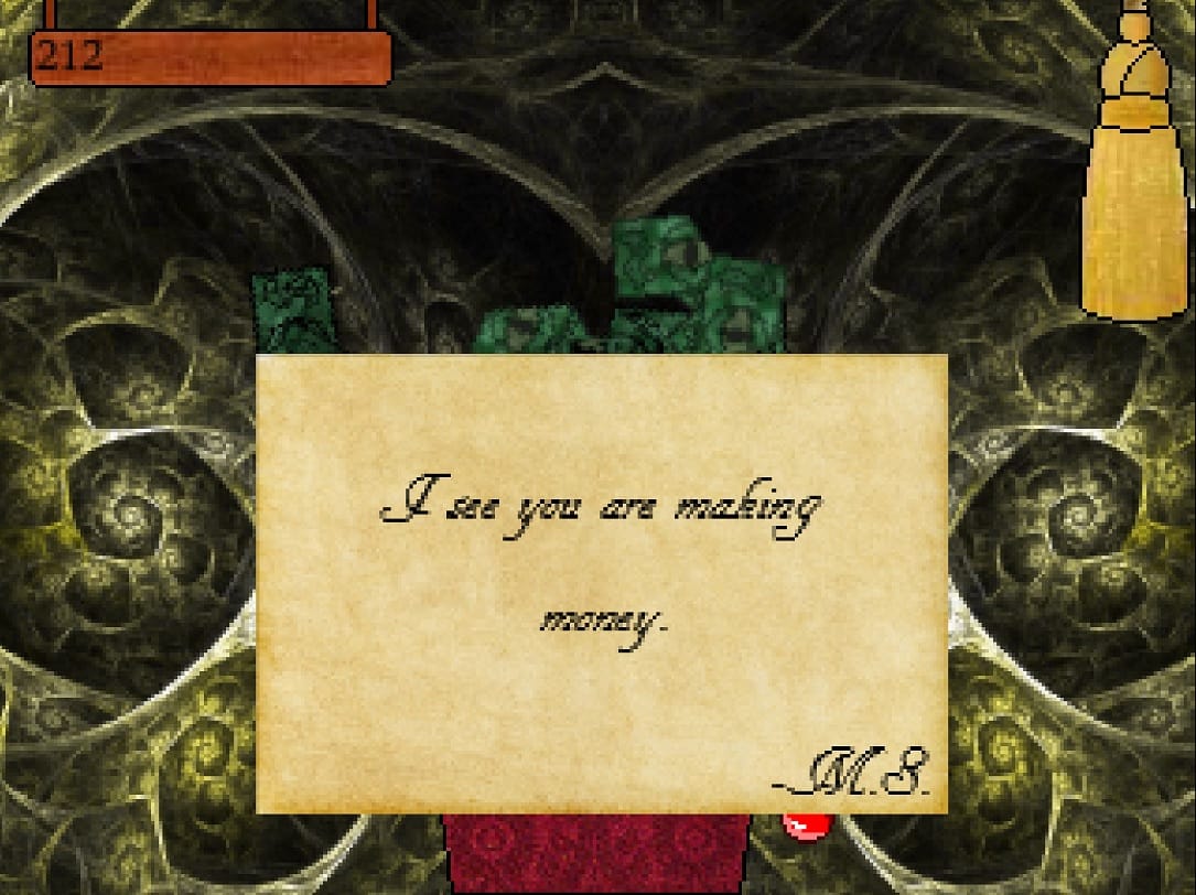 As with Tomorrow Corporation’s Little Inferno, its mundane money-making beginnings grow personalities that contact you by mail. Madame Sinclaire is the first, and she tells you early on that she, too, must make money. You presume that her motivation is as banal as your own—for greed and curiosity’s sake—but you find out later that she actually has no choice.