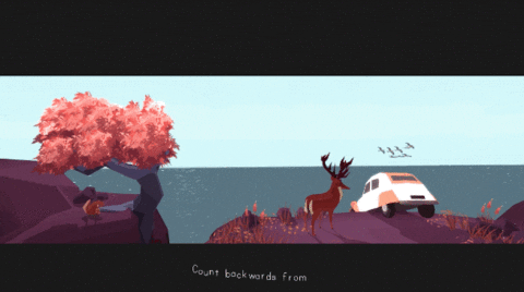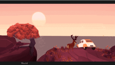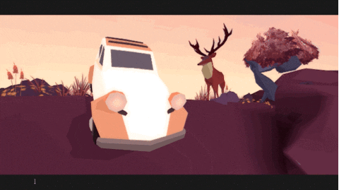 Though he works primarily for the BAFTA Award–winning studio State of Play, Batchelor moonlights as a game maker on his own personal projects, such as the forthcoming Far from Noise. A low-poly, warm-hued game in which the player takes on the role of a woman in her early 20s having a lengthy conversation with a deer, it promises both a rich narrative and more than a few surprises. After driving through the woods, the young woman loses control of her car and finds herself teetering on the edge of a cliff, surrounded by nature and confronted with mortality.