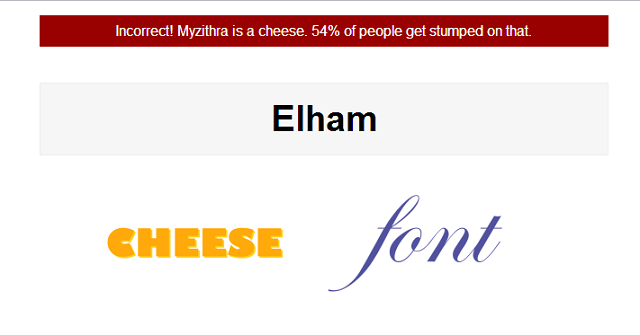 This quiz game gives you the name of a cheese or a font and asks you to discern which one it is. It’s a fun way to realize that the two are weirdly similar. If you do well, you’re probably some kind of cheese or font snob, or both. It’s okay, we still like you.