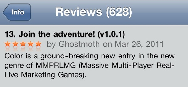 Pretty straightforward, right? Social networking with images. Well, apparently not, because some review wizard on the app store has dreamed up an fantastical, magical assessment of the game that would make Jonathan Swift proud.