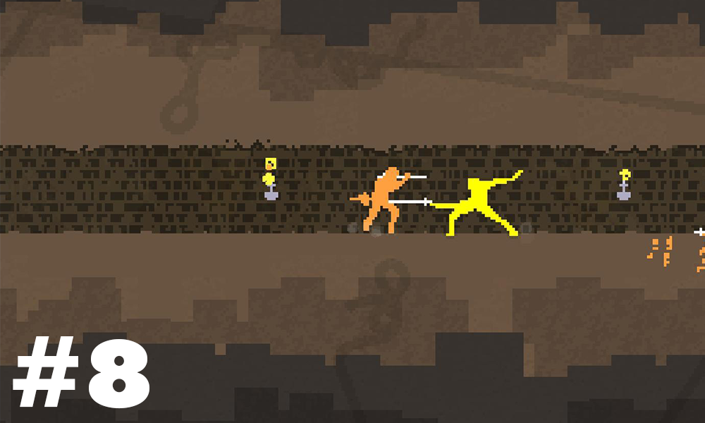 Nidhogg begs to be played in a room full of people. Half of the fun is the screaming and laughing that will ensue, and the other half is the smug satisfaction of watching your opponents try not to throw the controller across the room when they lose. The back and forth of the swordplay becomes hard to watch, but there is always that surge of adrenaline accompanying a particularly hard-fought kill. It’s like watching a tight, well-choreographed dance—except someone dies at the end, and the room laughs and lets out a collective sigh of relief.