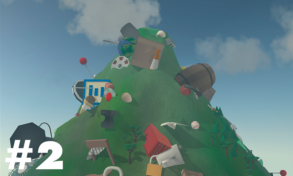 Your Mountain will live and spin and sing. It will wonder and pontificate. It will collect objects—giant cakes and bowling balls and anvils—and snow will fall on its contours; your mountain reflects each brand new day. But you can only watch as a loving parent does as your mountain grows and evolves just beyond your reach. You are not the active and personal god found in the monotheistic religions, but are more like a deist conception lauded by thinkers like Benjamin Franklin. You may have set this world on its tilt, but it spins on without you. The instructions to Mountain reaffirm this. The controls are merely listed “nothing.”