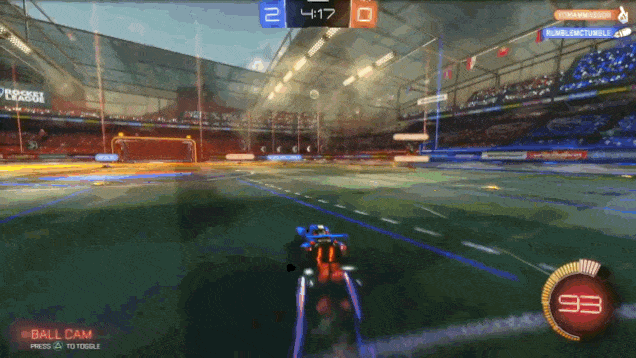 The same thing that fuels us all: victory. The feeling when you gun it from mid-field to a corner, dodging between opposing defenders, to front-flip a ball just as it bounces off the wall and send that sucker screaming into the goal. Or when you hop over a ball as it gradually breaks the plane of your goal, twist in a full circle only sorta intentionally, and knock it, with your car’s butt, to a teammate waiting nearby, who then races downfield. Or when you silence that glib shit on the opposing team who spammed “LOL!” when you scored on yourself—which you only did because you were the only person on your team interested in defending, apparently—by hopping over him to knock in the game-winner with 5 seconds left. You spam “LOL!” at him as the clock ticks out. You know, in that moment, greatness.