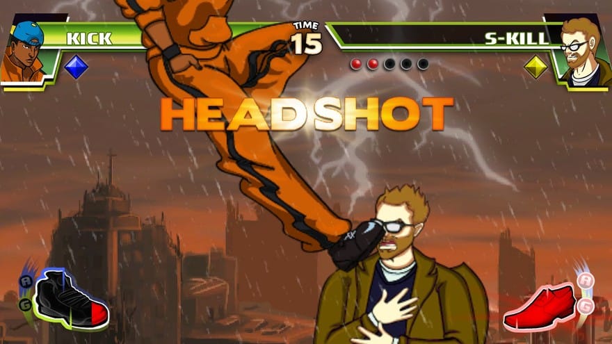 This is why it’s so easy to get excited about this new wave of “stripped down” fighters. When you reduce a game—stripping it not of superfluity, but of the entrenched technical aspects—you’re left with games that appeal to the heart, to the instinct, to the player not as an expert, but a novice. Divekick’s two-button controller and gameplay might first seem like a gimmick, but it essentially reduces a player to two hands attached to a gut: one that attempts to predict and out-perform an opponent reduced to the same. Nidhogg’s purity is spiced up by rounds that are won by distance, not combat, and feature a traditional control scheme that would have felt at home on an early console: directions, jumps, attacks.