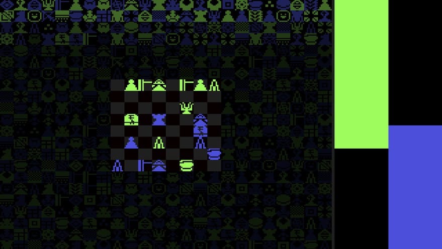 XYQ4’s weird vibes aren’t limited to its glitched board face. Each game begins with both players getting their pieces, none of them looking like the usual crew, even in a world with some heinously goofy chess sets. Their appearance isn’t the only curveball either, because even if you know what each piece should do from their position on the board, their functions are randomly lifted from a selection of various and weird move sets, which makes every play-session completely different.