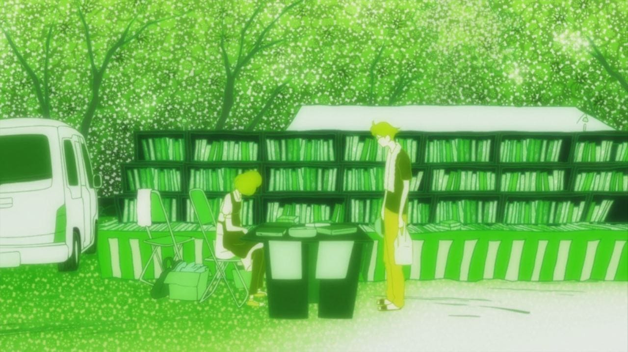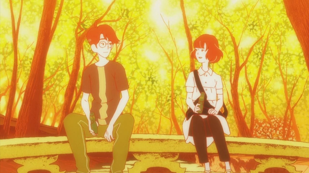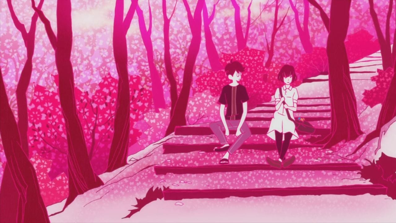 While color is used in Hue to solve puzzles, it also evokes a mood. Specifically in the quieter sections of the game, soundtracked merely by Hue’s mom’s monologues. Each new color added to Hue’s color wheel represents a new mood for his narrating mother, like red fostering her anger. In Masaaki Yuasa’s award-winning, sorta time travel-oriented anime The Tatami Galaxy (2010), color is also used as an indicator for different moments and emotions in life, as the protagonist pursues his coveted “rose-colored campus life.” When color filters over a scene, it’s likely to include his evasive love interest Akashi. Some scenes are blanketed in a shade of cherry blossom pink, others in a sublime yellow or green. Colors represent the different ways the protagonist’s friendship with Akashi exists—and how it’s manifested in different ways over the many parallel lived-in realities he experiences over the course of the show.