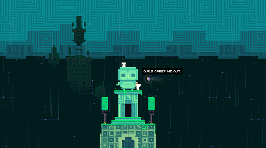 Fez’s second ending reveals the scope of its universe, wherein the camera zooms out of the home world we respawn in after scouring the game’s final location, and we learn that the world we’ve inhabited for all this time is in fact just one of several other cube worlds, these existing within larger hypercubes which resemble Gomez’s companion, Dot, perhaps suggesting something of her true nature. It’s such an apt metaphor for Fez as a whole, wherein all is far deeper and more complex than it initially seems. Where there’s a space, there’s a mystery, and mystery is one of Fez’s greatest allies, from its wide range of visual and aural richness to its pervasive symbology, to its colorful ways of posing to us questions concerning the dimensionality of the universe—mysteries of which all are explorable through play.
