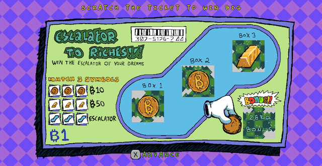 Vidiot Game is a videogame’s shot at punk rock, espousing the Dadaist philosophy of poking fun at things we culturally value and understand already. The character-select screen includes different classes—but their stats don’t seem to matter. A magical genie asks me impossible-to-answer questions at intermittent points. Gameplay is comprised of simple, repetitive yet engrossingly odd mini-games, which may result in a completely useless victory. The screen flickers at an increasingly erratic rate the more I play. Vidiot Game possesses all the things I expect from a videogame: the illusion of agency, consequence, reward, a rule set—even glitches. But these are all designed to reinforce a kind of cosmic meaninglessness in the act of playing. The game eviscerates game conventions as a form of tyranny, and yet I’m the “Vidiot” who keeps coming back for a reward that doesn’t matter and a system that doesn’t really ever change.