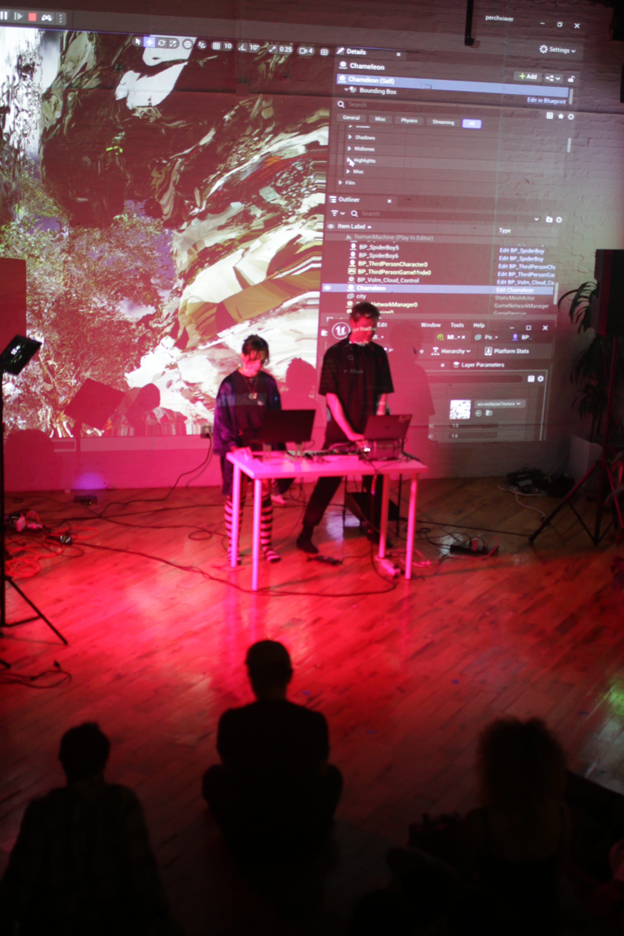 But the danger of live performance also generates unexpected joy and delight. Ardolic was playing a DIY performance recently and had created a spider as a “main character” with a procedurally animated walk. The crowd loved it. “Everyone chanted ‘SPIDER SPIDER SPIDER,” she told me. “Is it because it’s a DIY show or because I have so many friends here?”