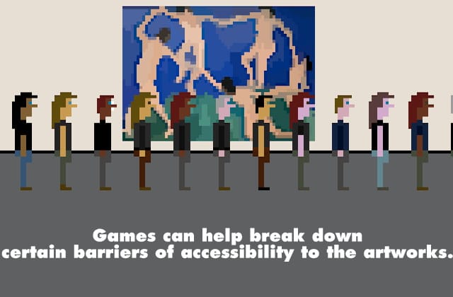 Abramovic has become an art-world superstar, hobnobbing with Jay-Z and inspiring, apparently, Lady Gaga. Pippin Barr, on the other hand, isn’t quite a household name for gamers, but he’s closely aligned himself with Abramovic. In 2011, he released The Artist is Present, a simulation of sorts of Marina Abramovic’s 2010 performance of the same name at the Museum of Modern Art in New York. Part art world satire and part genuine tribute, Barr’s The Artist is Present requires that you play it during actual museum hours and that you wait in line for the exhibition for hours to get a chance to seat your avatar in front of a pixel-art Abramovic and watch them stare into one another’s eyes. Turns out the real Marina Abramovic played the game and liked it, so much so that she went on to contact Barr about the Kickstarter collaboration.