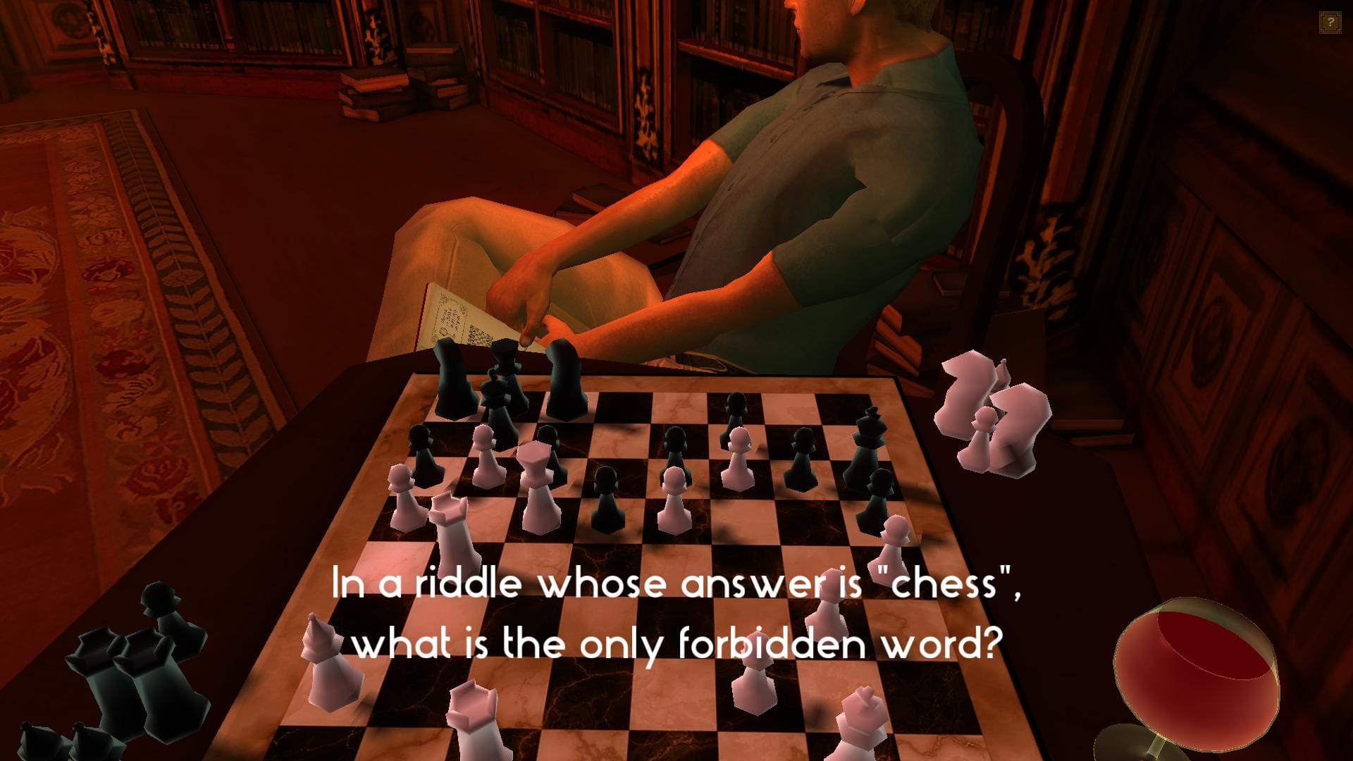 The chess game is taken from a question posed in Borges’s story: “In a riddle whose answer is chess, what is the only prohibited word?” You’re Tsun and sit across a table from Doctor Albert while seemingly midway through a game of chess. It’s up to you how to interpret the game logic here, as you can attempt to play chess as traditional rules demand if you wish, but you may notice that arbitrary play can be had here too, as any piece—no matter whether it’s black or white—can take all of the other pieces out, negating any firm rules. There’s a small puzzle to solve here, but again, it’s more about playing with permutation and the many colliding possibilities of the present.
