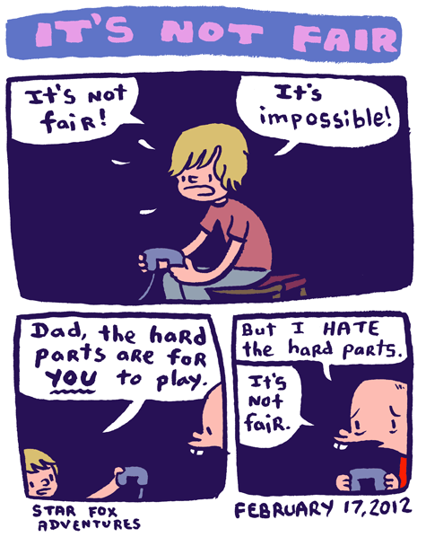 Cartoonist (and KS contributor) James Kochalka has a wonderful new Tumblr with new art everyday. He’s the war horse of the comic book world with such prolific output and Tumblr is a great medium for him. He also loves games and sadly Star Fox Adventures isn’t doing it for him.
