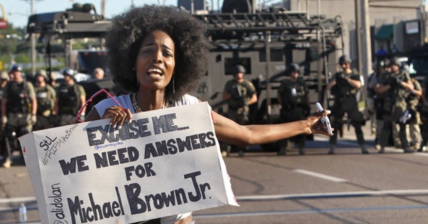 After a few days of taking in the events at Ferguson, Case’s creative spirit latched on to his thoughts and turned them into a succinct cartoon. He was inspired by an illustration he had seen that shows how the framing of a television camera can radically alter the story it depicts. (Both Case’s image and its inspiration are the header for this piece.) Case’s subsequent drawing was a context-specific update of the same idea, featuring a black citizen being beaten by a riot cop, but an inner frame makes it seem that the cop is the victim of the attack. After tweeting the image himself, Case saw his drawing shared by others, amounting to over 3,000 retweets in just a few hours. His image sat among many others on Twitter that had become popular for their perspicuous message regarding the “Ferguson narrative” and the issues it brought to the fore.