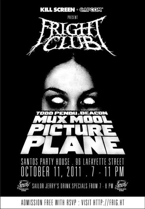 So we’re partnering with Capcom to launch the first ever Fright Club based on their zombie titles such as Dead Rising 2 Off the Record, Resident Evil : Operation Raccoon City, and Resident Evil Revelations. There will be drink specials from Sailor Jerry’s rum and of course, performances by Pictureplane, Mux Mool, Beacon, and DJ Todd Pendu.