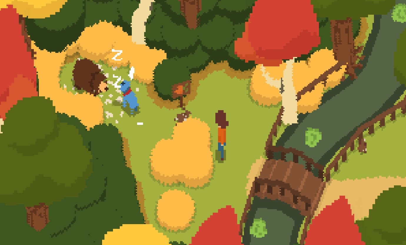 Autumnal shades of orange blend in with the pastel yellow curls of grass blades and flat blankets of green. Pixels are made to look like furry spheres that you can cosy into. The game’s hazy composition of the outdoors has the same appeal as impressionist paintings of nature: the fruit punch strokes of Monet’s blooming gardens and drizzling currents of leaves; Van Gogh’s smeared blue skies and finger-swirled white clouds, the dotty green landscapes of harvest wheat. As with these classic paintings, lisa is without harsh detail and outline in order to be soft on the eyes.