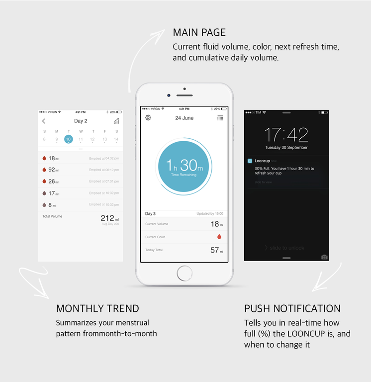Which is why Looncup is so incredible. Not only does it tell you when you need to change your cup through a mobile app, but it also keeps track of your fluid volume and color, which can often be a huge indicator of women’s health. And while I’m not a doctor, I know my doctor has been begging me to keep close track of my cycles since I was first initiated. And I haven’t—because, well, life tends to not be very period-friendly.