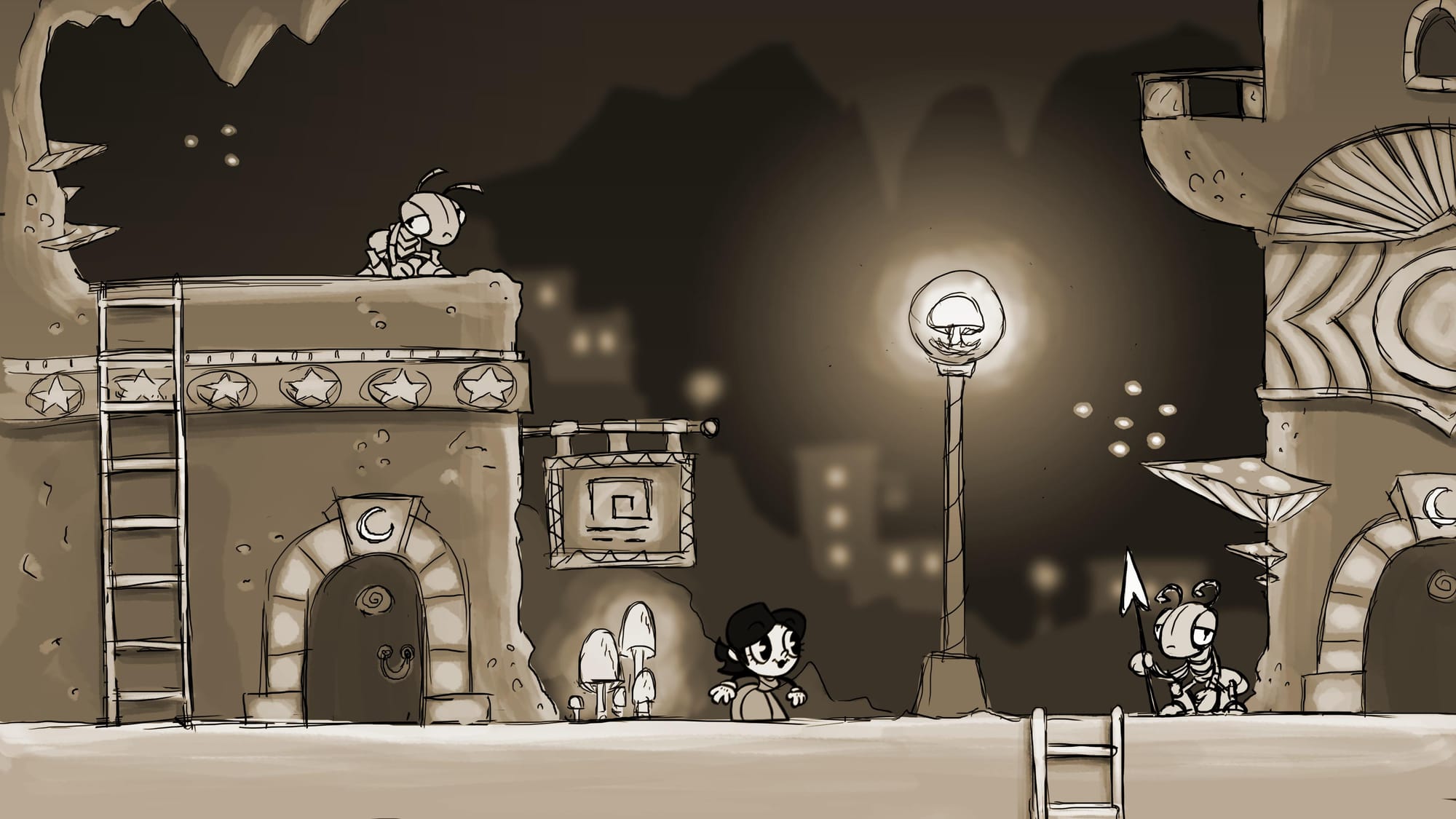 The greeting ceremonies are short-lived. Having shattered the relic that grants the Selenites access to a special power during the landing, Helen accidentally plunges their world into her own black-and-white existence. Owing as much, she then attempts to recover the relic’s colorful shards in order to progressively return the world to its former vibrancy.