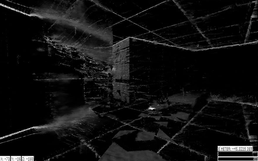 This is what I said when the game designer XRA kicked on Memories of a Broken Dimension, a game that’s been around for almost four years and that I’ve farted around with dozens of times in that span, and I said this—”Good lord”—because I felt it: a punch in the gut. I’d spent the past couple of days doddering around the Game Developers Conference strapped into various headsets and nodding politely through various demonstrations, and Memories of Broken Dimension was like a bucket of cold water. The black walls were bleeding black; baleful horns and raw, ghostly feedback poured out of the TV screen. I moved, and the tableau ruptured, some of the black lines holding on before the camera wrenched them away. The bleeding—all black, all digital—intensified. Moving through the game-world was like watching the enormous flatscreen in front of me slowly die; mounted to the wall, it had the feel of a crucifixion.