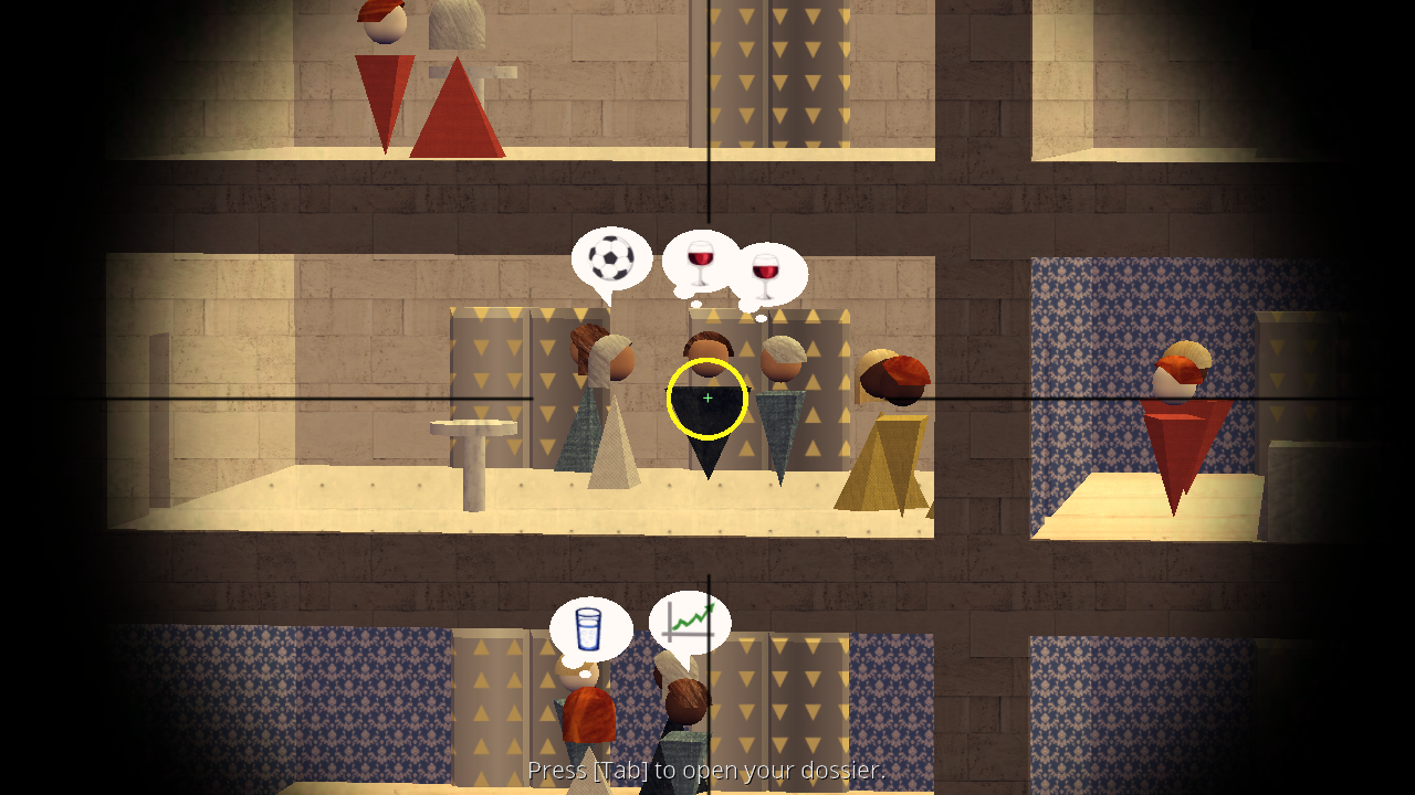 You may or may not be familiar with Spy Party. It’s a game of espionage played by two people. One person is a spy trying to remain undetected at a cocktail party while completing small missions. While another is a sniper trying to kill that person, looking for signs of human fumbling among the AI-controlled party-goers to direct their bullet at.
